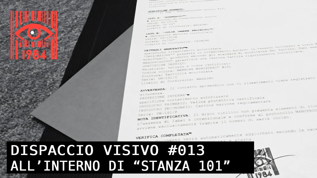 ▲ *Ministero Del Controllo Sonoro* dispaccio #75/2025 ▲ protocollo “iniziazione™”: vinile manoprodotto™ #101. ▲ sonorizzazione certificata del documento profetico “1984”. ▲ collaborazione obbligatoria: compositore di stato *Dystop™* e **Classitronica™ RECORDS**. ▲ frequenze controllate per purezza ideologica. specifiche di soppressione: ► formato: 10″ – 45 rpm. ► lato a: “stanza101™” (rieducazione sonora, 04’04”, ortodossia massima). ► lato b: “Julia (amore proibito)™” (deviazione controllata, 06’06”, crimine). manufatto totale: ► rivestimento: velluto marrone ministero™ #101, tattilità monitorata. ► avvertenza: contatto epidermico registrato. ► protezione: velina certificata + cartone regolamentare. ► identificazione: solo numero serie inciso. nessuna etichetta. ▲ la conformità è obbligo. la resistenza è rumore da silenziare. Da Iniziazione.